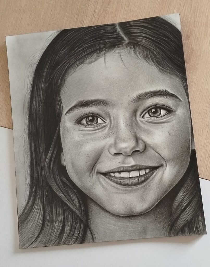 Portraits in graphite with realistic backgrounds, adding story and depth.